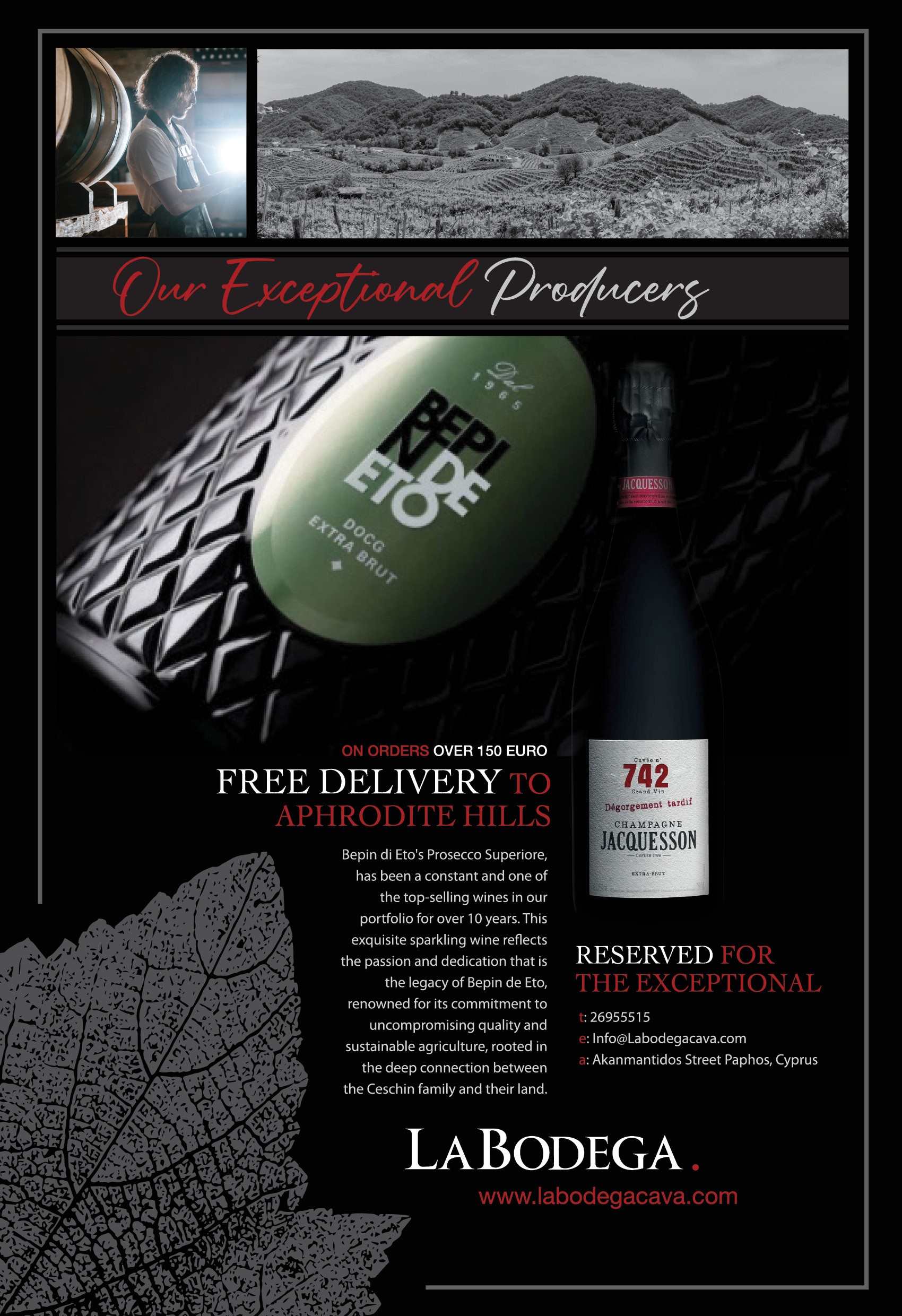 The ‘Aladdin’s Cave’ of high quality wines, champagnes and spirits. La Bodega are true wine experts. Extensive variety of alcohol, stocking unusual bottles and spirits that are not found in supermarkets. Regular wine tastings, knowledgeable and friendly staff, gift hampers, accessories, and lovel local foods and delicacies. Delivery service to Aphrodite Hills Resort available.