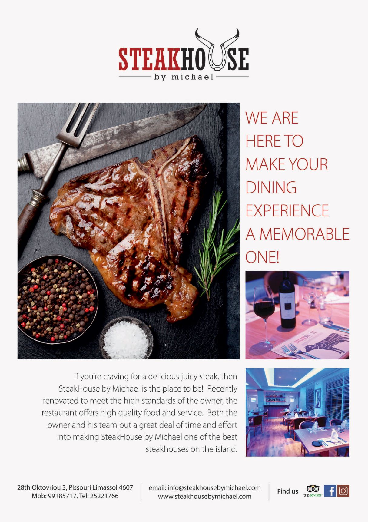 A fantastic option for meat lovers with eight different ‘Black Angus Prime Cut’ steaks available to choose from (and some lovely vegetarian options too). Michalis is dedicated to using the freshest ingredients and this comes out in the wonderful flavour of the food. Home-grown veggies, herbs and prime cuts of the world’s finest meat combine for mouth-watering results! A warm, welcoming atmosphere and impeccable service. You’ll be greeted with a complimentary prosecco and leave with a full tummy and a smile – a stunning dining experience all round. All dietary requirements well catered for.